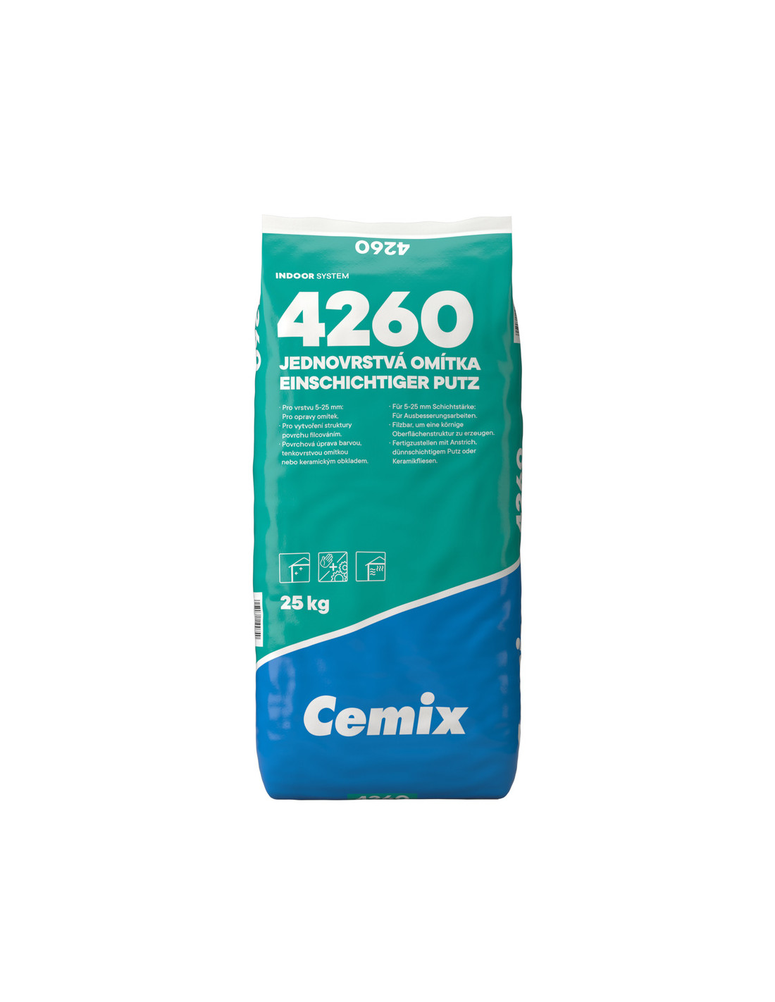 Omítání všech typů stavebních materiálů ve vnitřním prostředí – vytváření podkladu pod fasádní nátěry a šlechtěné omítky nebo keramické obklady. Bez nutnosti dodatečné povrchové úpravy štukovou omítkou. Ideální pro omítání zdiva z pórobetonových tvarovek