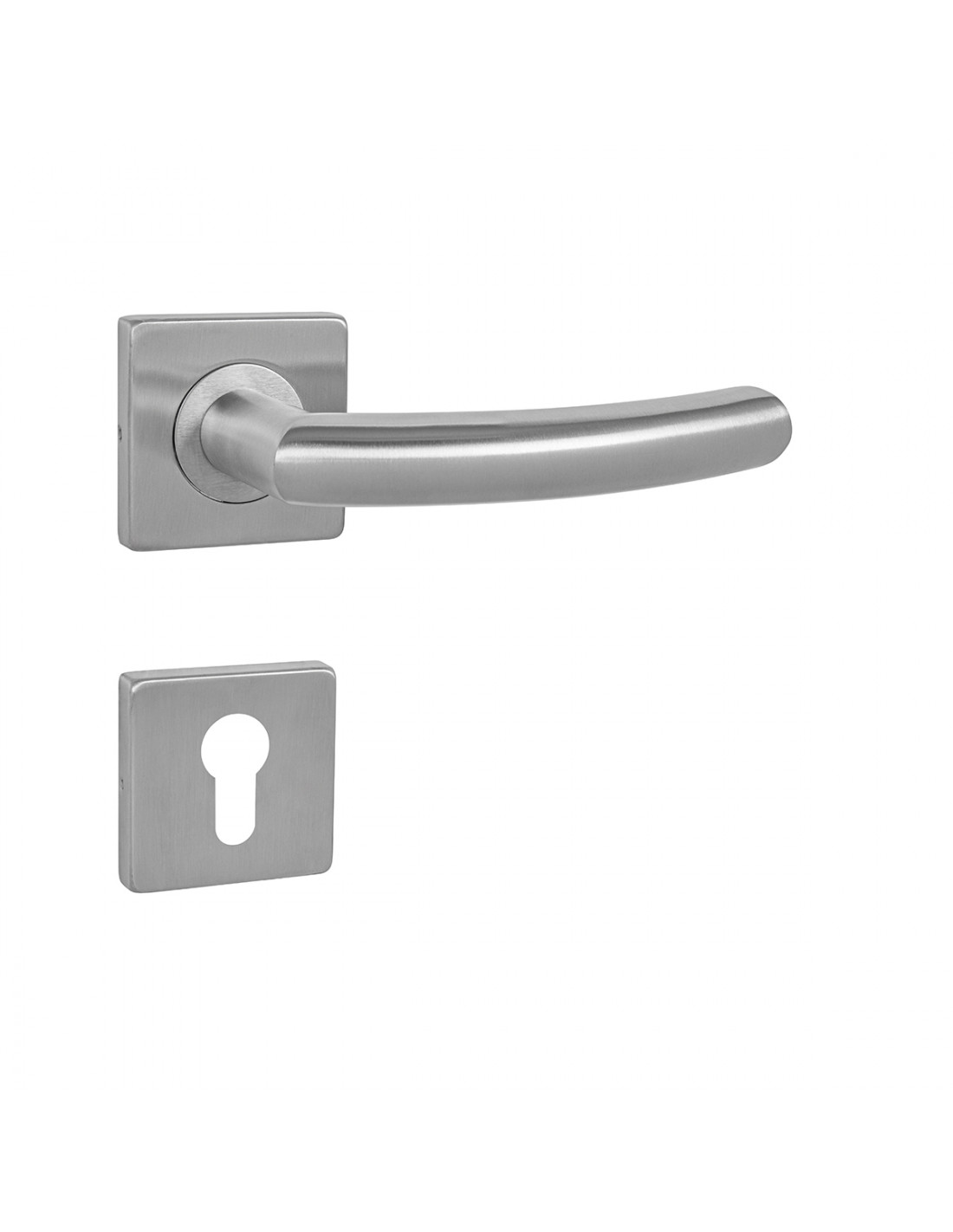 Rozetová klika na interiérové ??dveře s hranatou rozetou je vyrobena z vysoce kvalitní nerezavějící oceli, známé jako nerez a je povrchově upravena. Rozeta má rozměry 54 mm x 54 mm a tloušťku 9 mm. Je barevně stabilní a odolná vůči opotřebení. Kování je testováno dle normy ČSN EN 1906: 2012 na 200 000 cyklů.Konstrukce kliky:• pouzdro z pozinkované oceli• mosazný krček• vratný mechanismus kliky• kovové výstupky• šroub na prošroubování• nerezová krytka rozetyZ hlediska odolnosti povrchové úpravy a četnosti používání kliky je vhodná do interiérů s vysokou frekvencí pohybu lidí, např. administrativní prostory, nemocnice, prodejny, čerpací stanice, nákupní centra apod. Rovněž do exteriérů a v některých případech i do prostředí se zvýšenou vlhkostí.Součástí balení je spojovací materiál pro tloušťku dveří 40 - 42 mm.
