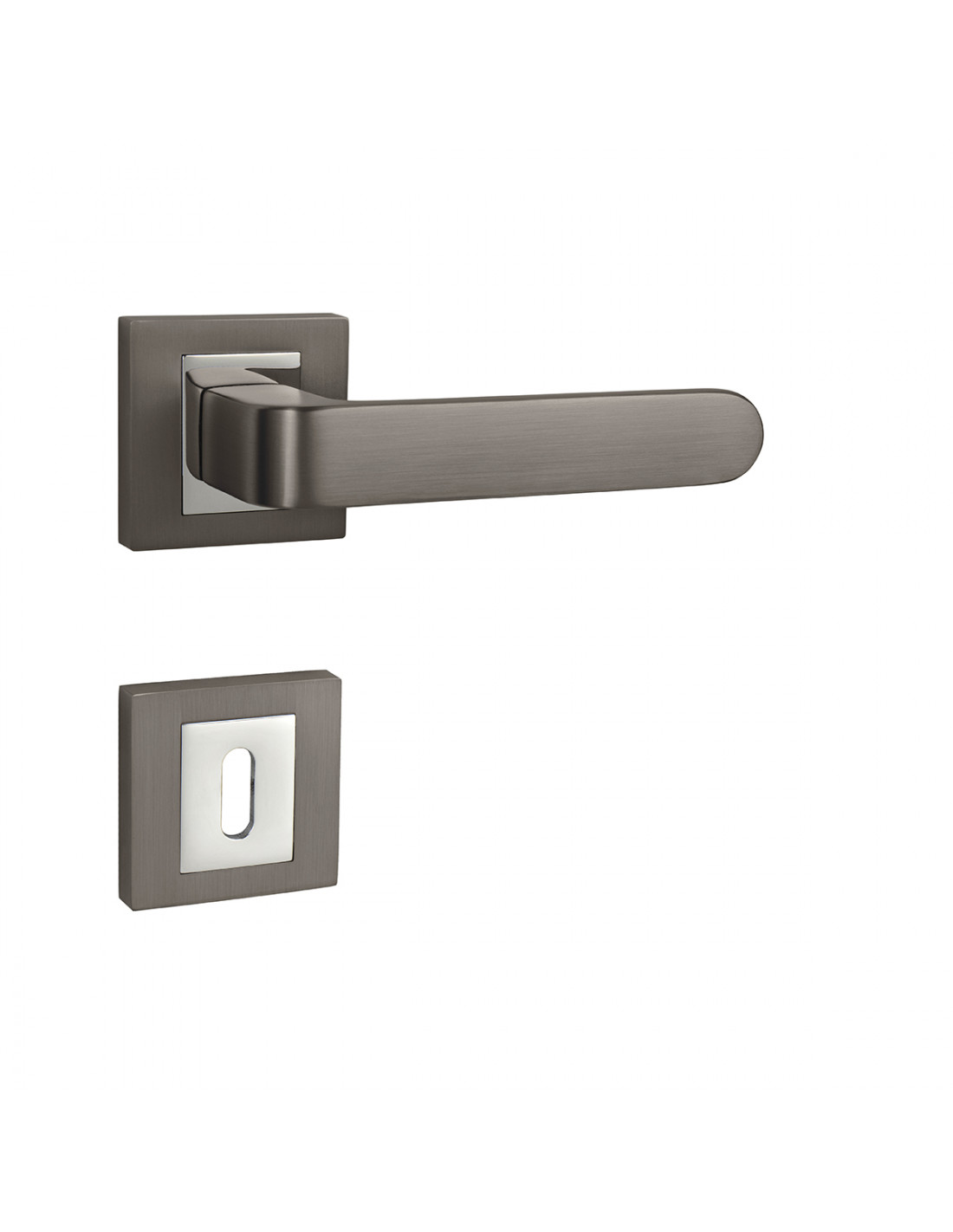 Rozetová klika na interiérové ??dveře s hranatou rozetou je vyrobena odléváním z kvalitních slitin zinku a hliníku a je povrchově upravena. Rozeta má rozměry 52 mm x 52 mm a tloušťku 10 mm. Klika je povrchově upravována galvanizací a vyznačuje se vysokou odolností proti korozi. Kování je testováno na 100 000 cyklů.Konstrukce kliky:• pouzdro ze slitiny zinku• vratný mechanismus kliky• kovové výstupky• šroub na prošroubování• krytka rozety ze slitiny zinkuZ hlediska odolnosti povrchové úpravy a četnosti používání kliky je vhodná do interiérů s nízkou frekvencí pohybu lidí, např. byty, rodinné domy apod.Součástí balení je spojovací materiál pro tloušťku dveří 40 - 42 mm.