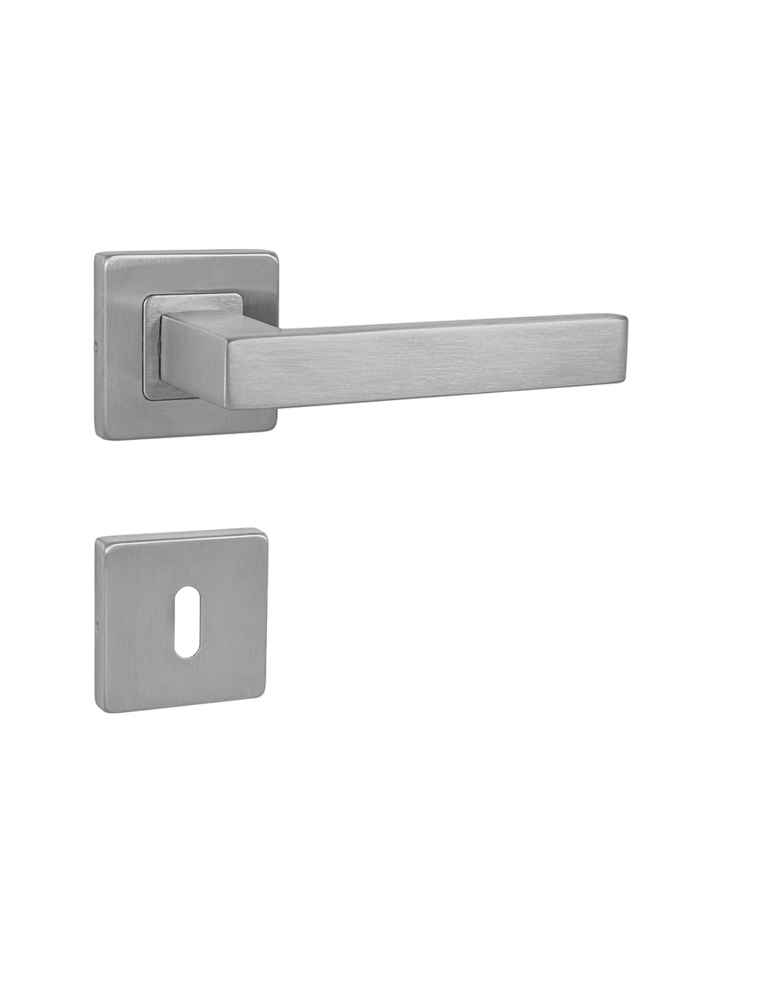Rozetová klika na interiérové dveře s hranatou rozetou je vyrobena z vysoce kvalitní nerezavějící oceli, známé jako nerez a je povrchově upravena. Rozeta má rozměry 54 mm x 54 mm a tloušťku 9 mm. Je barevně stabilní a odolná vůči opotřebení. Kování je testované podle normy ČSN EN 1906:2012 na 200 000 cyklů.Konstrukce kliky:pouzdro z pozinkované ocelemosazný krčekvratný mechanismus klikykovové výstupkyšroub na prošroubovánínerezová krytka rozetyZ hlediska odolnosti povrchové úpravy a frekvence používání kliky je vhodná do interiérů s vysokou frekvencí pohybu lidí, např. administrativní prostory, nemocnice, prodejny, čerpací stanice, nákupní centra a pod. Taktéž do exteriérů a v některých případech i do prostředí se zvýšenou vlhkostí.Součástí balení je spojovací materiál pro tloušťku dveří 40 - 42 mm.