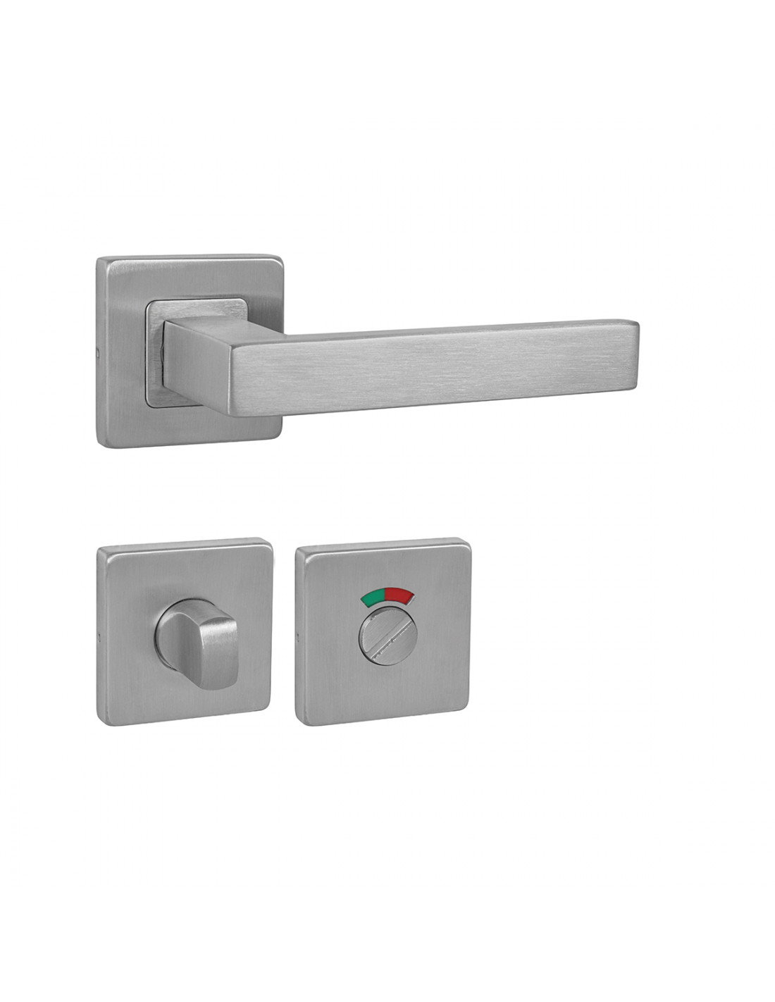 Dveřní kování MP - Nero - HR, broušená nerez, klika/klika, rozeta WC s ukazatelem