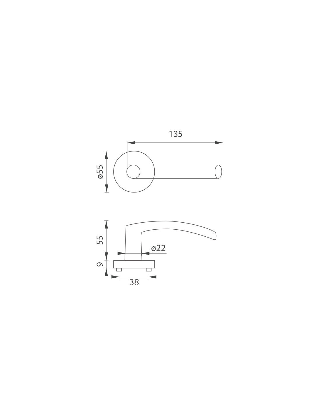 Rozetová klika na interiérové dveře s kulatou rozetou z vysoce kvalitní nerezavějící oceli, známé jako nerez a je povrchově upravena. Rozeta má průměr 54 mm a tloušťku 9 mm. Je barevně stabilní a odolná vůči opotřebení. Kování je testované podle normy ČSN EN 1906:2012 na 200 000 cyklů.