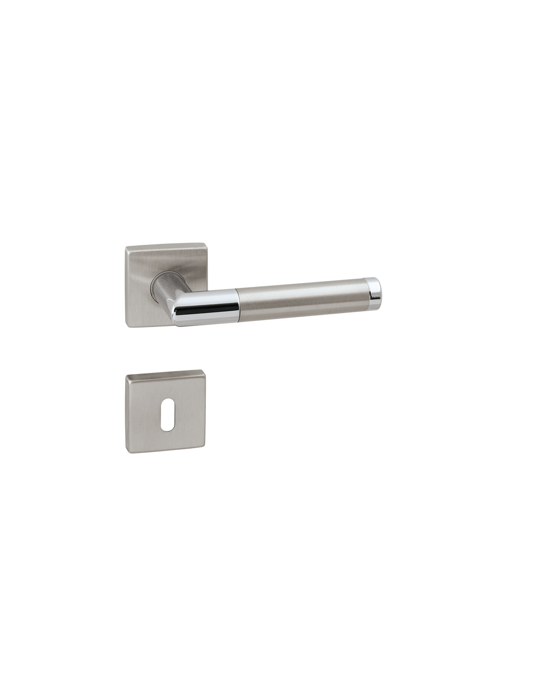 Rozetová klika na interiérové ??dveře s hranatou rozetou je vyrobena z vysoce kvalitní nerezavějící oceli, známé jako nerez a je povrchově upravena.