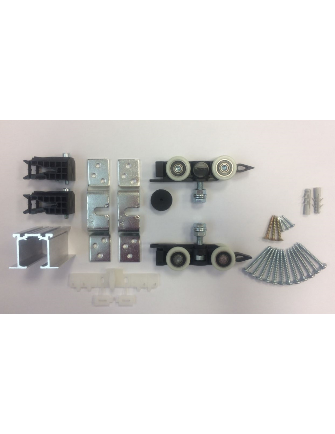 Sada pojezdů pro pouzdra Norma a pouzdra Latente (2 vozíčky, 2 dorazy, 1 vodící trn, 2 nosníky, spojovací materiál).